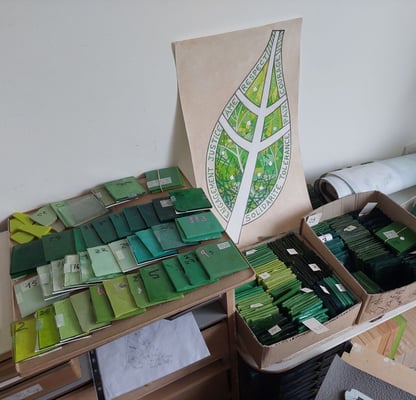 feuille réalisée en 5 parties qui seront réunies sur leur support final.