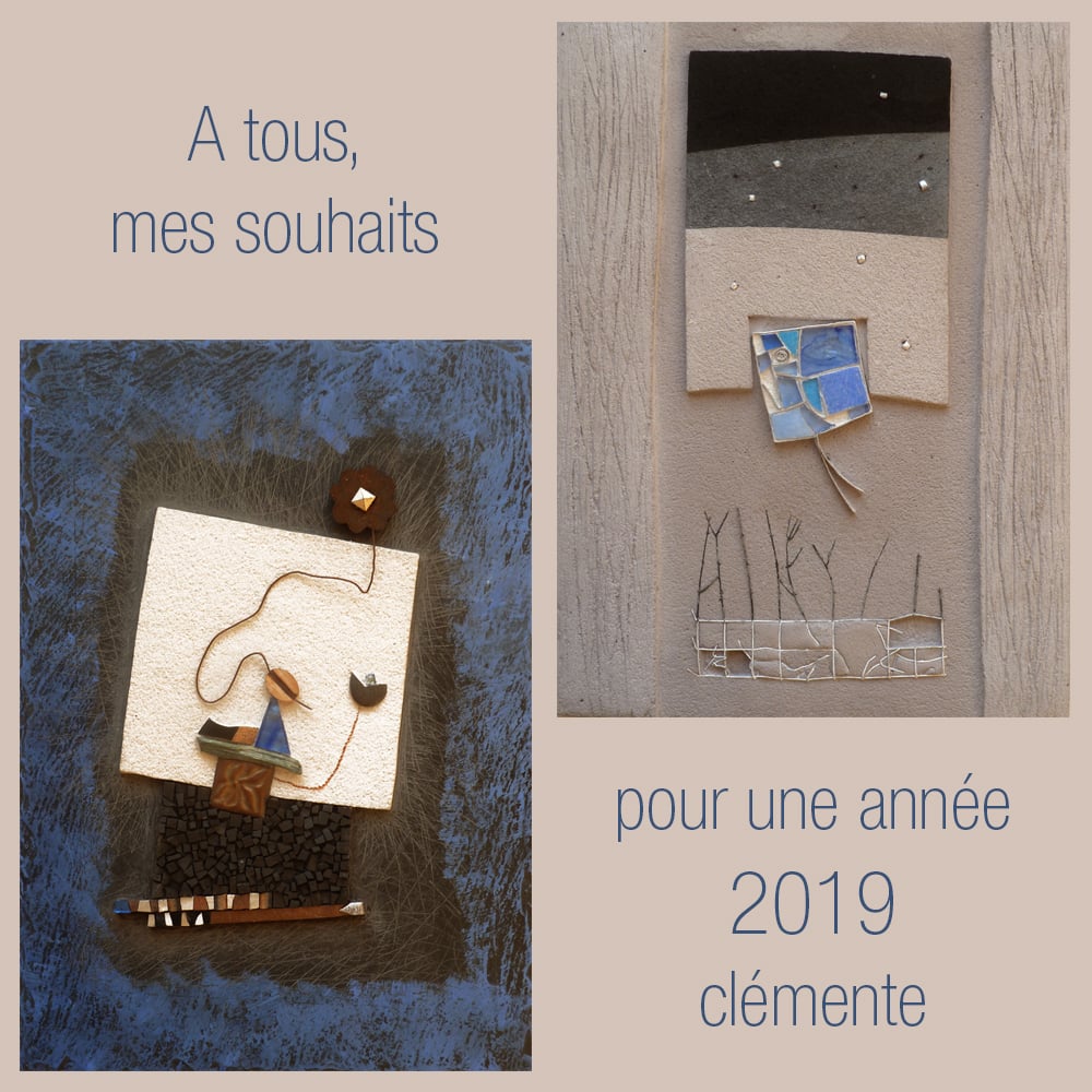 Pour moi, l’année de préparation de ma première monographie (prévue pour novembre 2019) : Cécile Bouvarel M O SA Ï Q U ES 33 ans d’atelier (1986-2019) Un catalogue de 296 pages avec quelques 300 photos, des textes, des notes d’atelier… et un tirage de tête de 33 exemplaires numérotés, présentant la monographie dans un étui ornementé d’une mosaïque-miniature. Il fera l’objet d’une souscription au printemps et d’une présentation lors de mon exposition annuelle de...