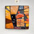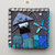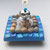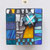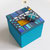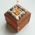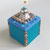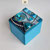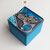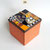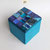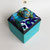 Boîte-Pavé en médium patiné, ciré et mosaïquée (différents matériaux: pâte de verre, ardoise, marbre, galets, perles, nacre, métal...)